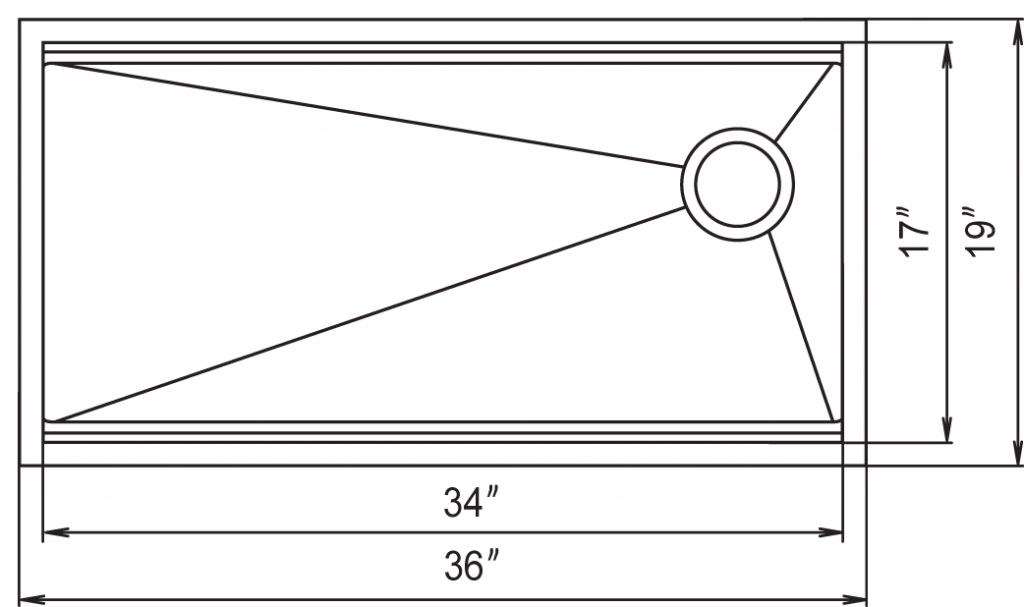 HUS2T3619F9 36 in (915mm) x 19 in (483mm) x 9 in (230mm) Under Mount Single Bowl 3619 HUS2T3619F9 Features Stainless Steel SUS 304 Thickness: Gauge 16 Hairline Finishing Powder Coating underneath of the bowl Drawing: Back HUS2T3619F9-Specification