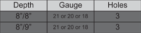 9”/8” Depth . 21 or 20 or 18 Gauge
